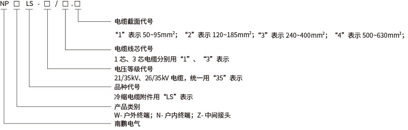 1.“WLS-35/3.1”表示冷缩三芯户外终端,额定电压为35kV适用于电缆截面为50-95mm2的三芯电缆。