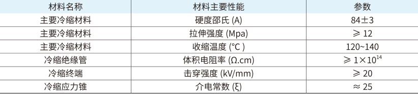 35KV冷缩电缆附件主要材料技术参数