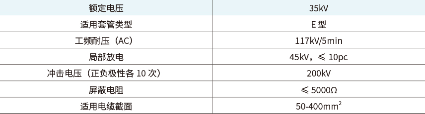 产品接口符合标准EN50180-50181中E型套管设计和IEEE 386中35kV 600A套管接口设计。
