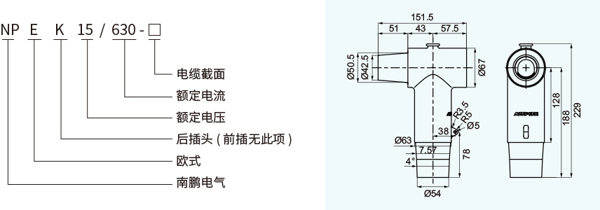 后插头和欧式前插头或另外的后插头连接,提供扩展的电缆连接回路(分支),它不能直接和套管连接。尾部可直接用绝缘塞堵住,也可以扩展连接另外一路后插电缆头或后插式避雷器。