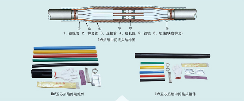 1kV热缩中间接头系列产品,适用于0.6/1kV单芯、二芯、三芯、四芯、五芯聚乙烯、交联聚乙烯、橡塑电力电缆,具有良好的电气性能和机械性能,能在各种恶劣的环境条件下长期使用。具有重量轻、安装方便等优点。广泛地应用于电力、石油、化工、冶金、铁路港口和建筑等各个领域。