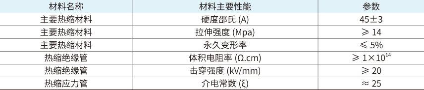 20kV热缩电缆附件主要材料技术参数