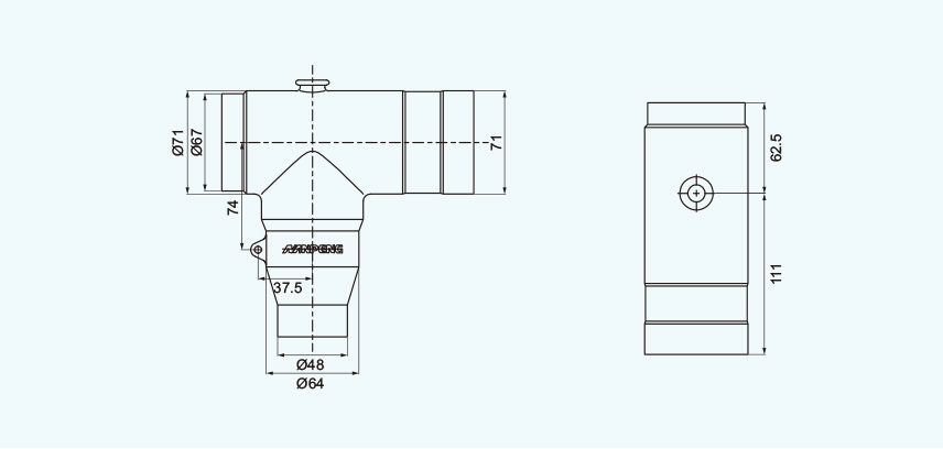 屏蔽型丁字接头以绝缘外套和导电铜件构成,导电铜件嵌在绝缘外套内。屏蔽型丁字接头绝缘外套采用耐高温、抗老化的硅橡胶绝缘材料制造且内部设计独特,使复杂的电场均匀分布,产生优异的性能且使用寿命长;导电铜件上装有弹簧触指,弹性好,采用线状接触面设计方案,更好保证导体的通流能力。使用屏蔽型丁字接头后,充气柜可以任意的连接组合方式进行扩展,其连接之处全屏蔽、全绝缘、全密封、全防护,结构紧凑,扩展性极好,且具有优异的绝缘性能以及通流能力。
