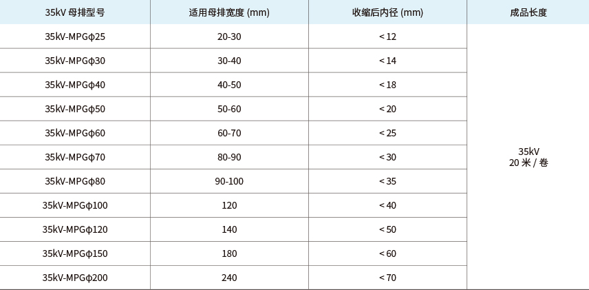 35kV热缩母排套管主要技术参数
